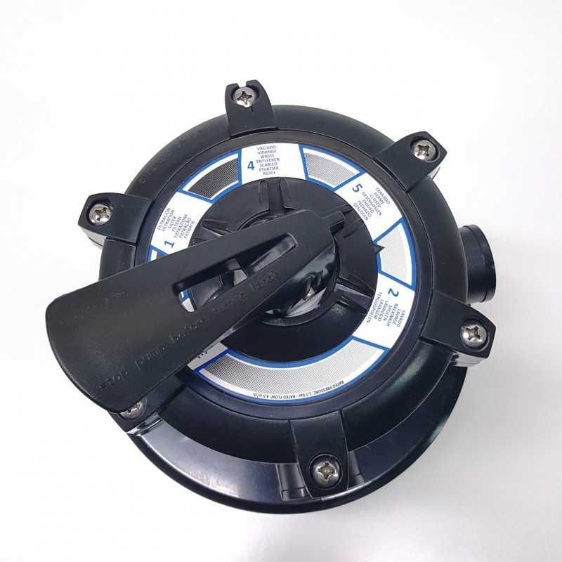 El filtro de arena está equipado con un cabezal de varias vías, por lo general 5 o 6, tiene diversas funciones clave: filtración, contralavado, enjuague, recirculación, vaciado y cierre. Para seleccionar la función deseada, simplemente presiona la palanca del cabezal hacia abajo y gírala hasta que la pestaña coincida con la opción requerida.