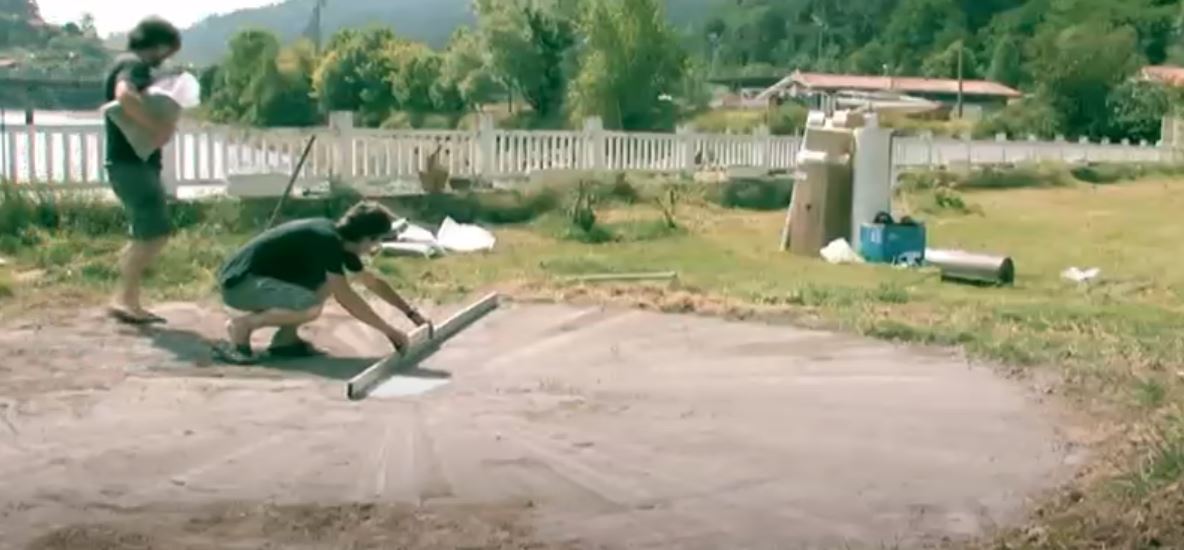 - Si vas a montar la piscina directamente sobre la tierra, esparce una fina capa de arena tamizada, riégala y compacta con un rodillo de jardín.