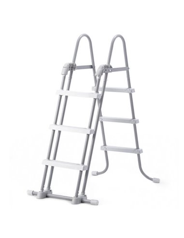 Otro tipo son las escaleras en forma de tijera. Estas tienen una forma parecida a una tijera. Son una opción popular para piscinas desmontables o elevadas, ya que se pueden plegar y guardar cuando no están en uso. También ofrecen peldaños antideslizantes para garantizar una entrada y salida segura. En este caso puedes encontrar escaleras de tijera para piscinas con altura menor, como 90 cm de altura.